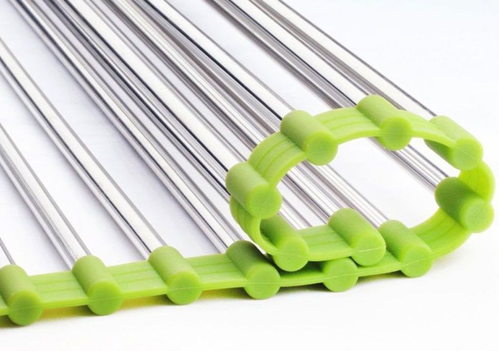 Sencillo y versátil, el multiusos enrollable de Arcobañ es un maravillo accesorio que hace funciones de escurridor y salvamanteles. Basta desenrollarlo y listo.