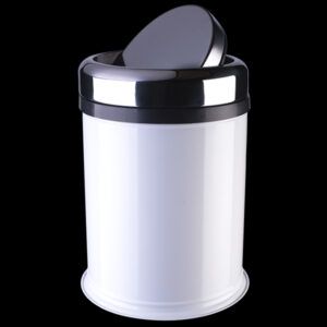 Fabricado en inox. Acabada en blanco. Ideal para poner en la cocina como papelera de residuos orgánicos. Se puede poner sobre la encimera dado el tamaño. También para el baño.