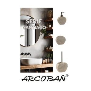 LOTE ESCOBILLERO + DISPENSADOR/DOSIFICADOR JABÓN + VASO BEIGE SANTIAGO