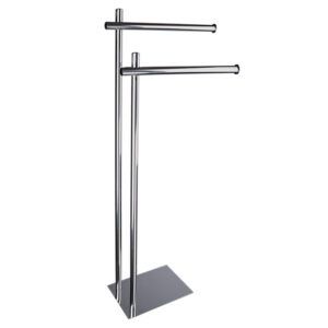 Fabricado en inox, acabado CROMO. Base circular inox. Escobillero inox acabado en cromo.