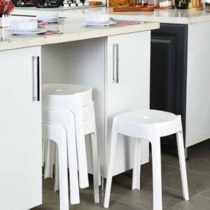 Taburete multiusos. Fabricado en ABS. Incorpora bases antideslizantes en las patas.
