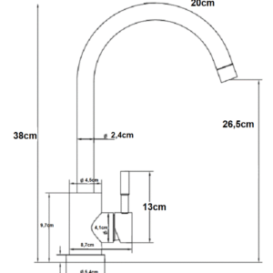 Fabricado en acero inox. Acabado negro Acabado igual a los fregaderos. Giro caño 360º. Se suministra en caja. CAÑO LARGO: 25CM