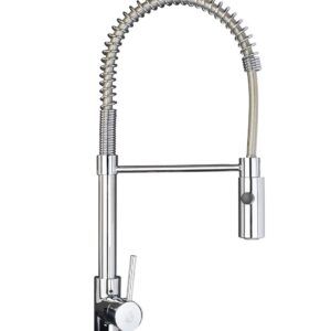 Monomando fregadero MISTRAL Diseño industrial. Fabricado en latón. Muelle orientable Ducha 2 posiciones con ducha Fortuna Flexo protegido por PVC. Se suministra con todo lo necesario para su instalación. Disponemos de todos los repuestos para este grifo.