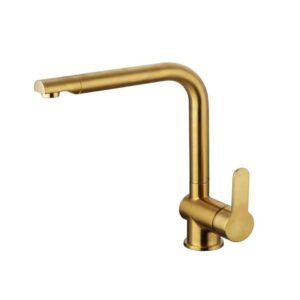 Fabricado en acero inox ACABADO ORO Giro caño 360º. Se suministra en caja