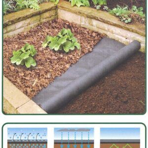 A diferencia de las láminas de plástico, eco-textil ecogardenalia es una superficie porosa y permite el paso del aire, agua y nutrientes, hasta las raíces de las plantas. Mientras impide el crecimiento de malas hierbas. Químicamente inerte. No reacciona con fertilizantes, herbicidas y pesticidas. Perfecto para huertos, invernaderos. No permite que el terreno se embarre. Adecuado para cubrir bodegas de monte y así evitar las desagradables y dañinas hierbas. EL PVP es 1 rollo de 2m x 50m= 100m2 ecogardenalia