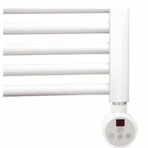 Fabricado en Acero. Acabado en BLANCO. Radiador secatoallas ELÉCTRICO. Incluye tapones y soportes. Termostato regulable en temperatura y tiempo hasta 5h. 600W Consulte con un profesional para su instalación.