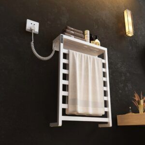 Fabricado en Acero. Acabado en BLANCO. Radiador secatoallas ELÉCTRICO. Incluye tapones y soportes. Termostato regulable en temperatura y tiempo hasta 5h. 400W Consulte con un instalador profesional para su instalación.