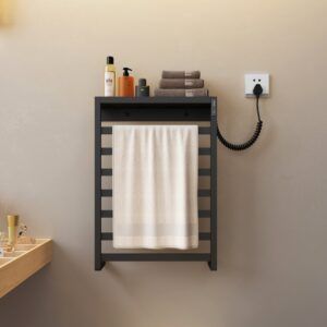Fabricado en Acero. Acabado en NEGRO. Radiador secatoallas ELÉCTRICO. Incluye tapones y soportes. Termostato regulable en temperatura y tiempo hasta 5h. 600W. Consulte con un instalador profesional para su instalación.