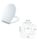 Asiento de inodoro fabricado en Urea plastic, máxima resistencia. Color blanco. Sistema confort clean: con solo pulsar un botón, permite retirar la tapa para conseguir una higiene perfecta. Sistema softclose: Caída ralentizada. Material anti bacteriano: Previene infecciones, limpio y saludable. Diseño cuadrado similar al DAMA.