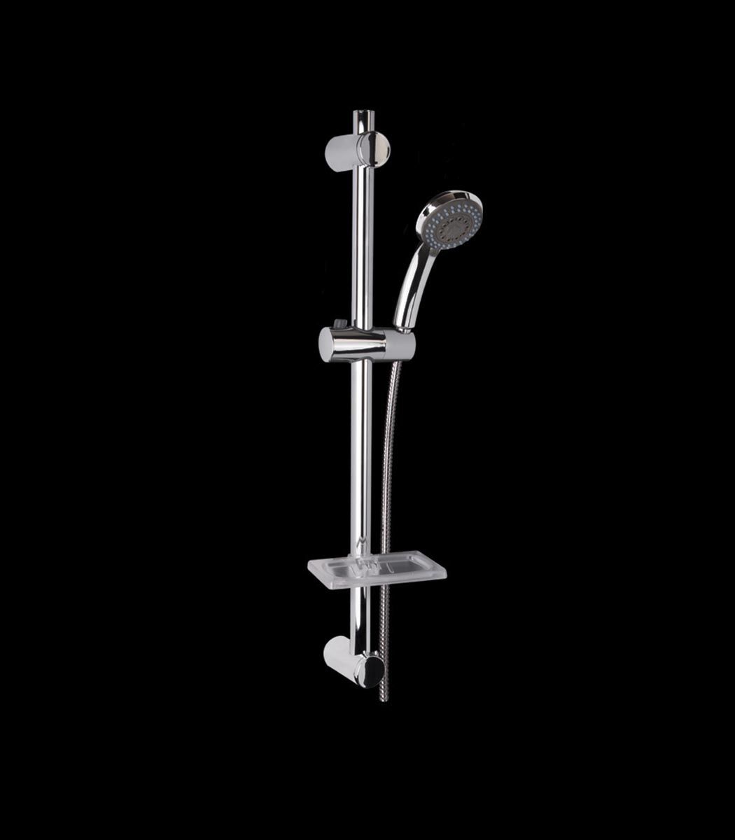 Fabricada en Acero inoxidable. Incluye ducha hidromasaje de 5 posiciones, jabonera y flexo en acero inox. Soporte ajustable a cualquier altura. Se suministra en blister.