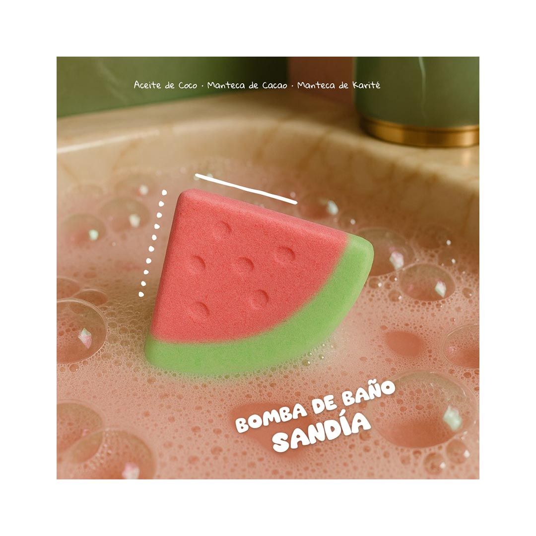 Disfruta de un baño de color, aroma y suavidad con el Pack 5 bombas de baño. Con 5 aromas diferentes. Con aceite de coco, manteca de karité y manteca de cacao, cada bomba perfuma y cuida tu piel mientras se disuelve en el agua. Aromas frutales: sandía, manzana, cereza, fresa y piña. 🌈🍉🍏🍒🍓🍍