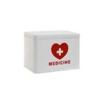 Botiquín para el hogar de metal color blanco con corazón rojo