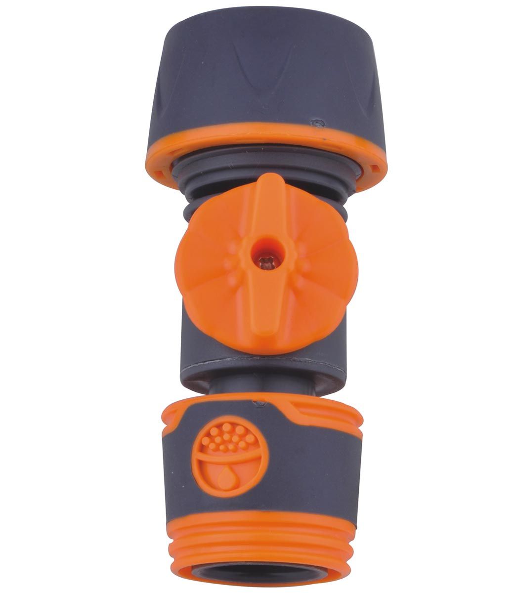 Conector para manguera de 13-16mm con corte de agua. Lleva una válvula para cortar o abrir el agua.