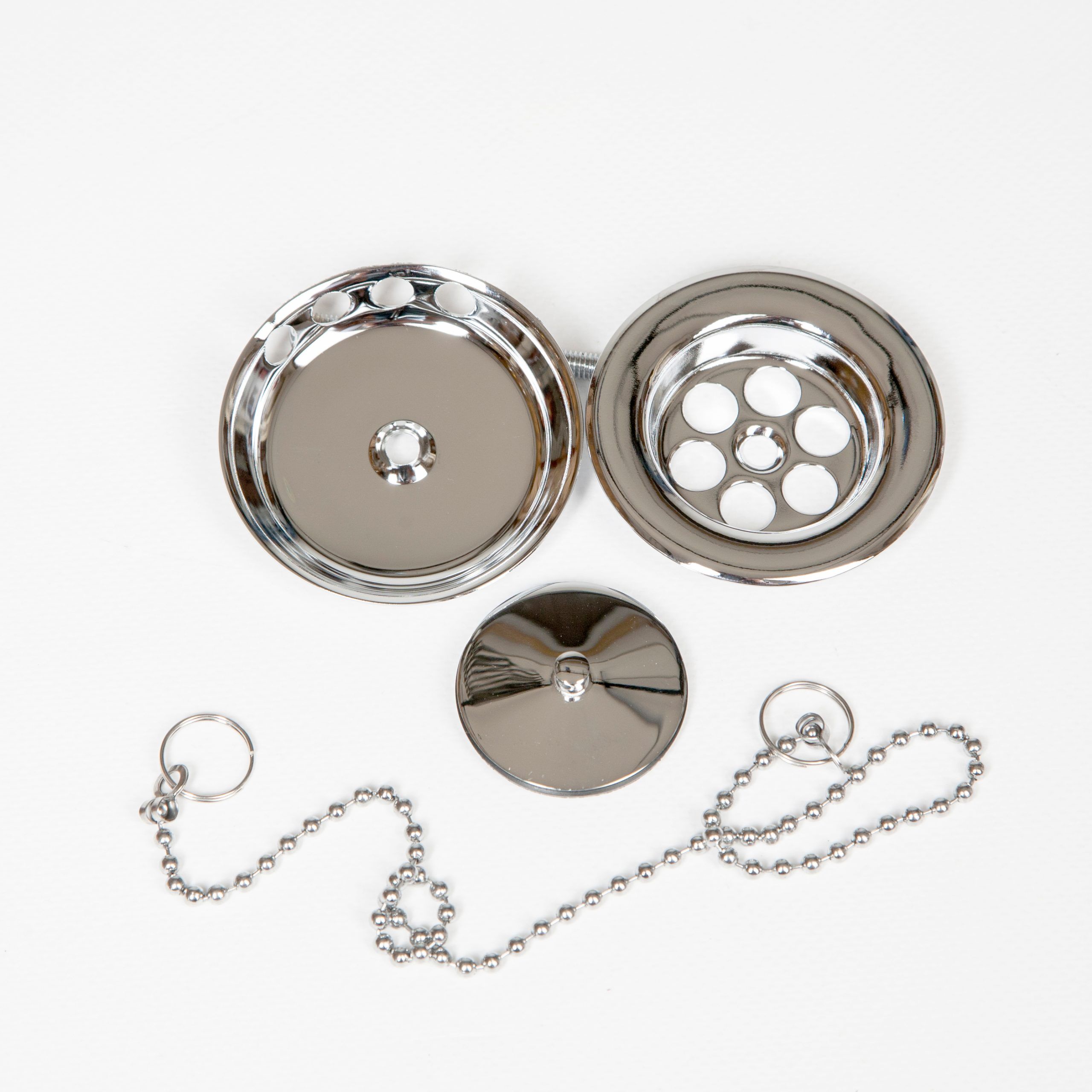 Válvula para Bañera. Fabricada en acero inox. Acabado en cromo. Incluye tapón, cadena, tornillo y rebosadero.