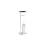 Duo de suelo BLANCO con portarrollos, escobillero y soporte para toallitas WC húmedas, móvil, etc….