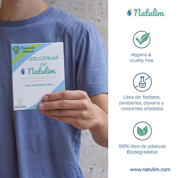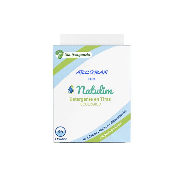 Detergente en tiras sin fragancia NATULIM. Hipoalergénico. Ecolimpieza. Deja la ropa limpia y suave. 100% libre de plásticos. Biodegradable.