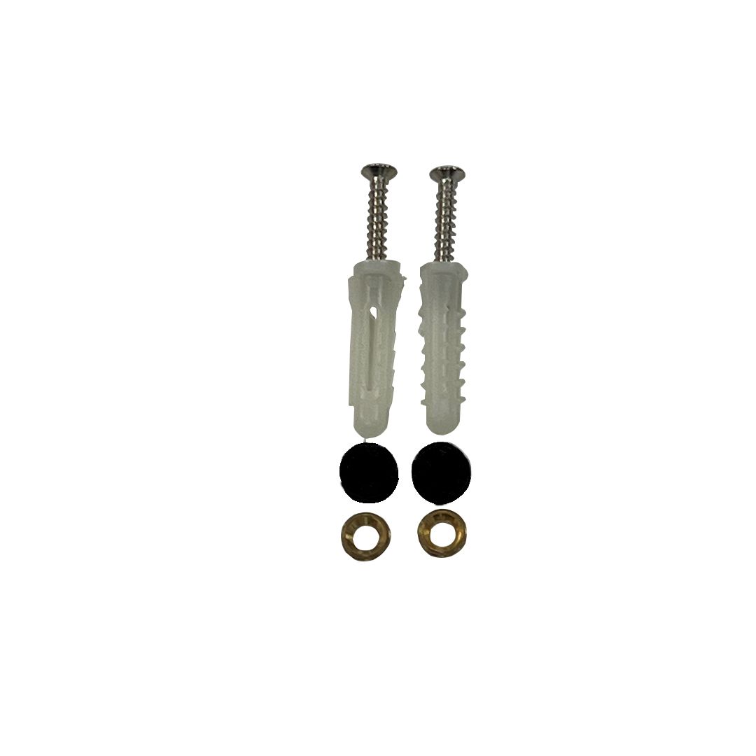 Consta de: 2 tornillos, 2 tacos, 2 embellecedores.
