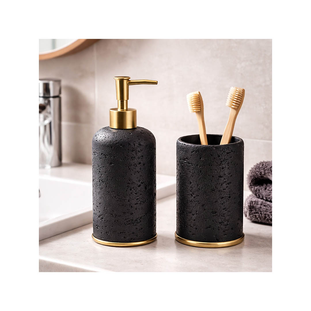LOTE DISPENSADOR/DOSIFICADOR JABON + VASO ISLANDIA NEGRO