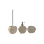 Lote Escobillero + Dosificador + Vaso. Fabricado en resina. Color beige