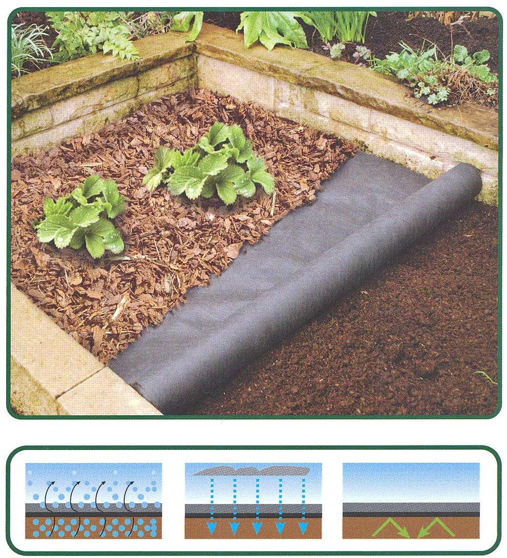 A diferencia de las láminas de plástico, eco-textil ecogardenalia es una superficie porosa y permite el paso del aire, agua y nutrientes, hasta las raíces de las plantas. Mientras impide el crecimiento de malas hierbas. Químicamente inerte. No reacciona con fertilizantes, herbicidas y pesticidas. Perfecto para huertos, invernaderos. No permite que el terreno se embarre. Adecuado para cubrir bodegas de monte y así evitar las desagradables y dañinas hierbas.