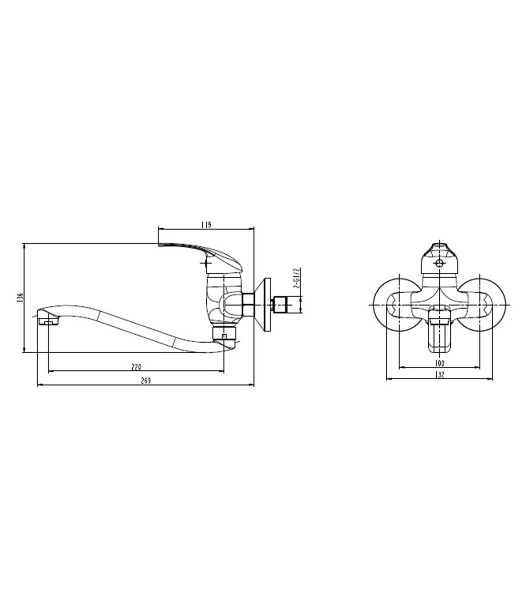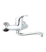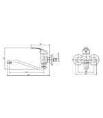 Fabricado en latón. Caño Bajo conformado. Excéntricas incluidas para adaptar el grifo a las tomas. Giro caño 180º. 10cm entre tomas.
