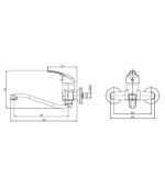 Fabricado en latón. Caño Bajo conformado. Excéntricas incluidas para adaptar el grifo a las tomas. Giro caño 180º. 15cm entre tomas.