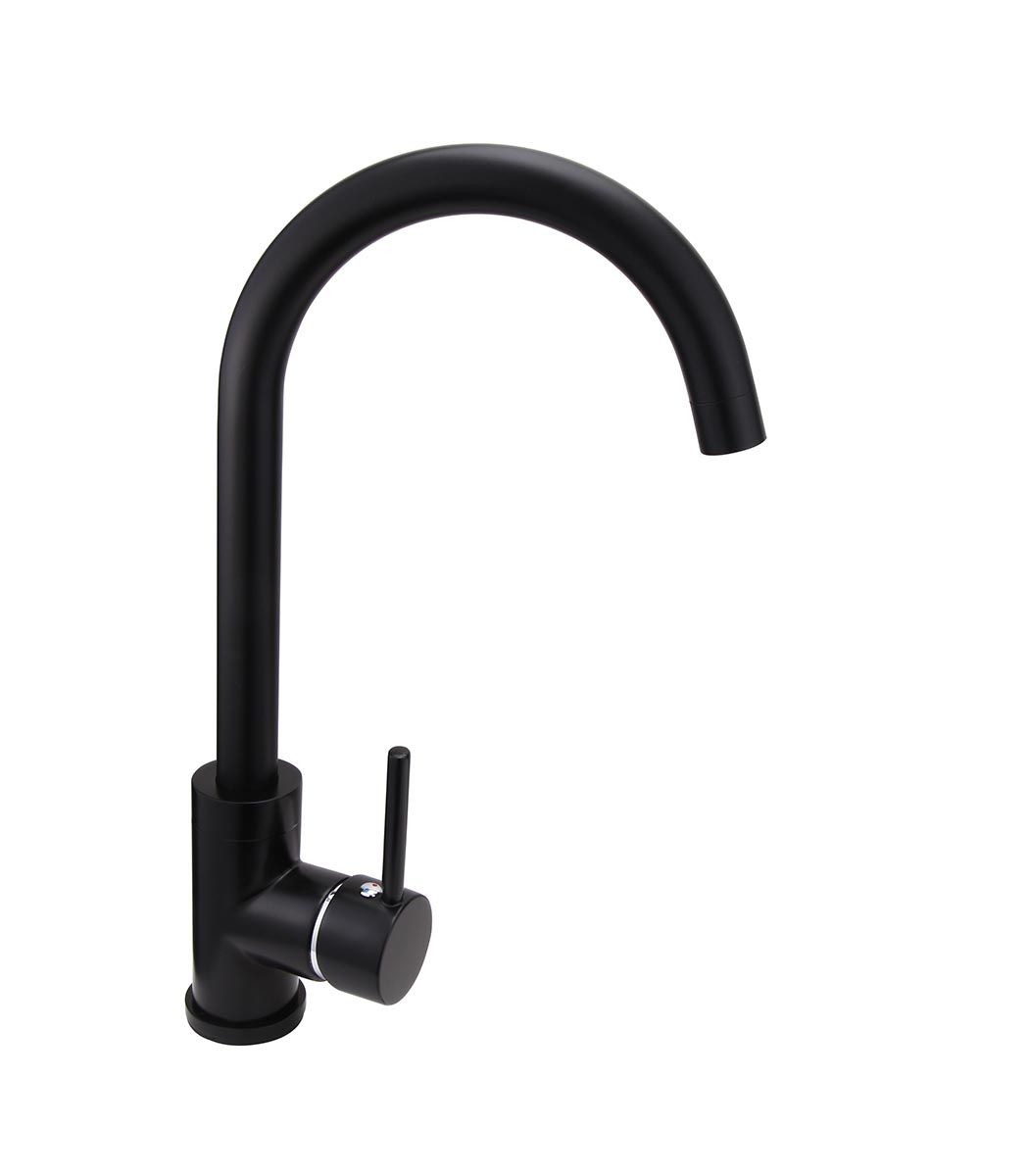 Fabricado en latón. Lacado en NEGRO. Giro caño 360º. Se suministra en caja
