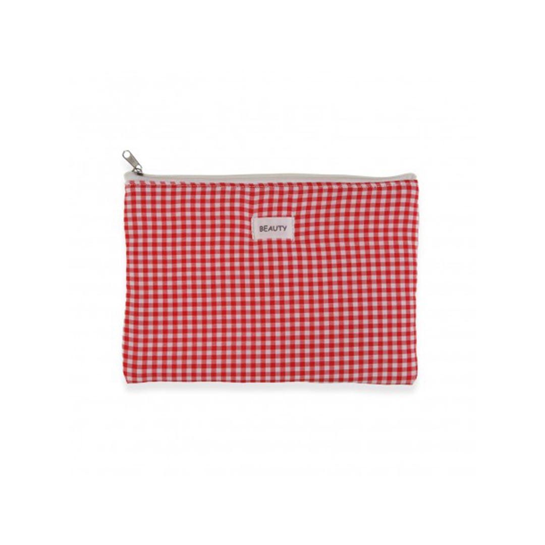 Neceser multiusos cuadros rojos con cremallera.