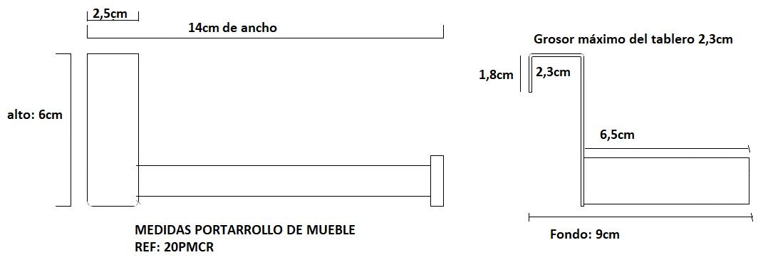 Portarrollos de mueble. Fabricado en Acero inox. Instalación en mueble sin taladros.