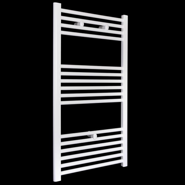 Fabricado en Acero. Lacado en blanco. Radiador secatoallas de circuito de calefacción. Incluye tapones, soportes y purgador. Llaves NO incluidas. 705 kcal. Consulte con un instalador profesional para su instalación. Disponible también en 40cm de ancho.