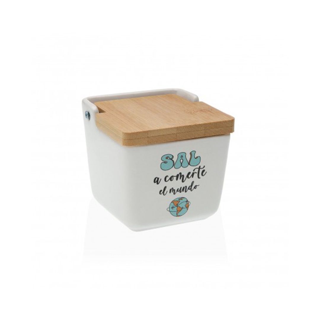 Salero con diseño mensaje: “Sal a comerte el mundo”
