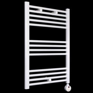 Fabricado en Acero. Acabado en BLANCO. Radiador secatoallas ELÉCTRICO. Incluye tapones y soportes. Termostato regulable en temperatura y tiempo hasta 5h. 400W Consulte con un instalador profesional para su instalación. Disponible también en 40cm de ancho.