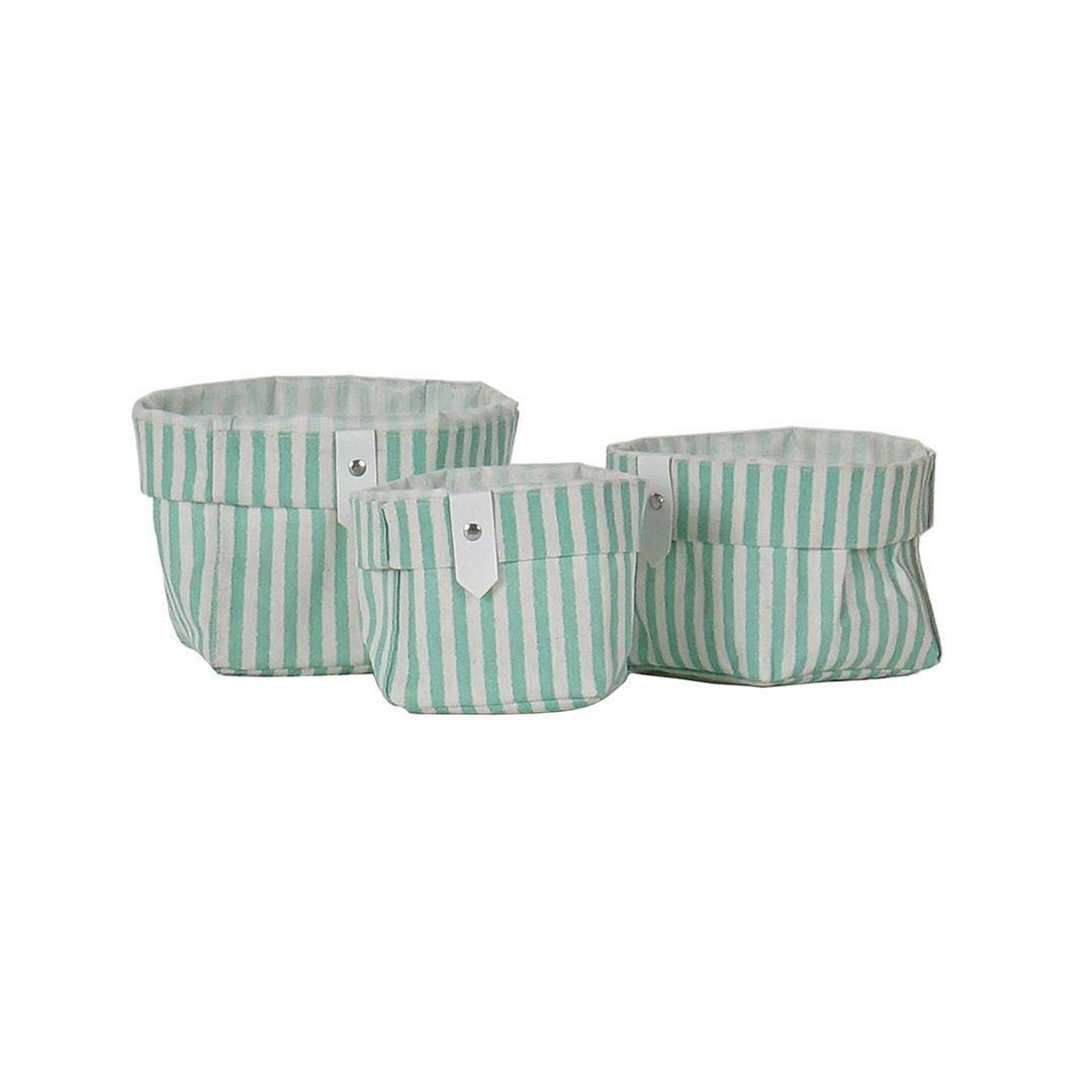 Set 3 cestas cuadradas diseño rayas verdes