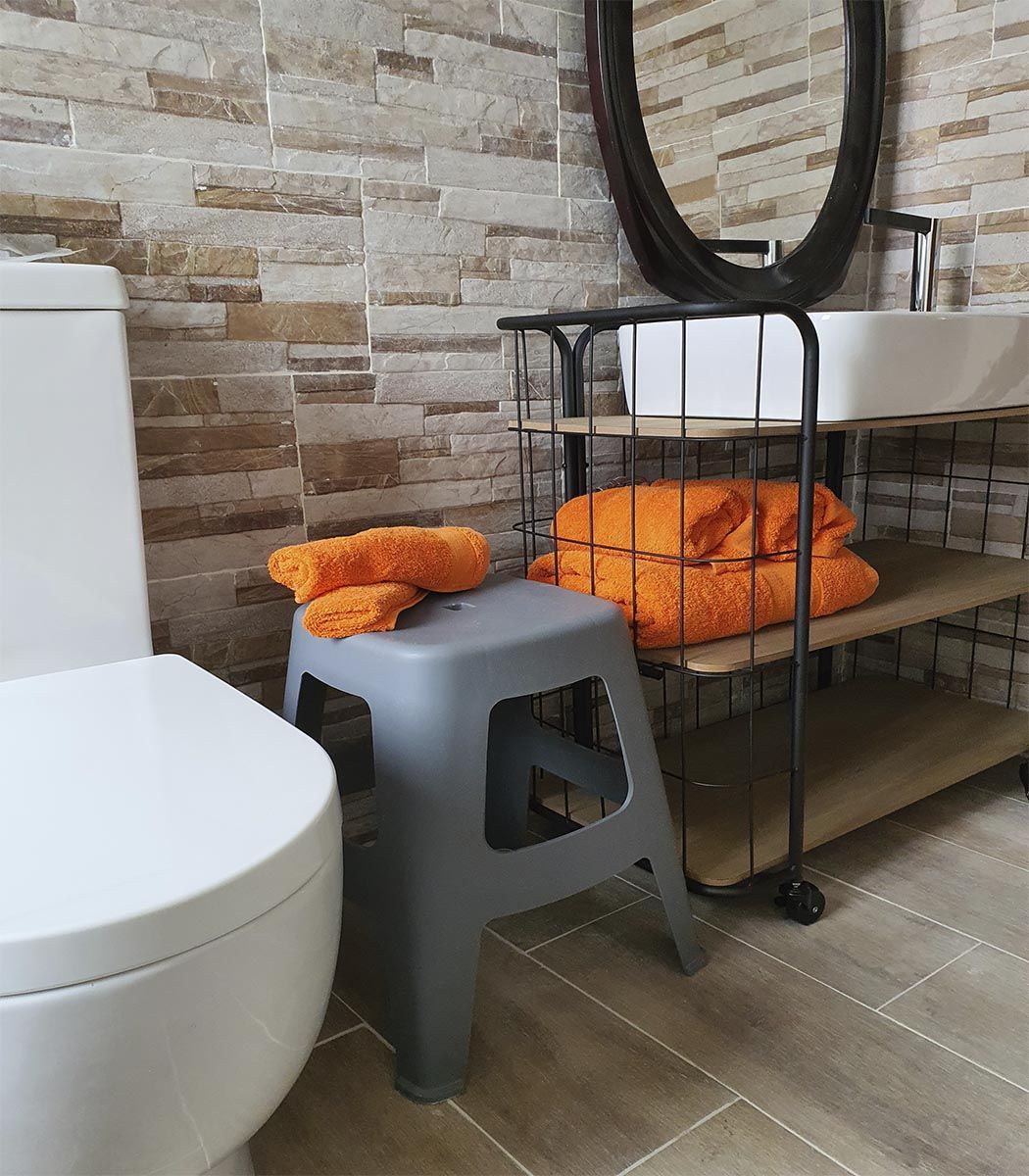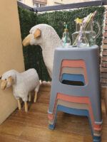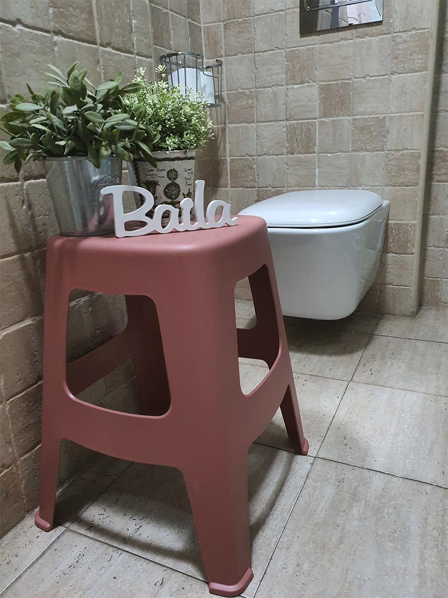 Taburete multiusos. Fabricado en ABS. Incorpora bases antideslizantes en las patas.