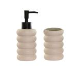 Set Dosificador + Vaso. Fabricado en dolomite. Color beige