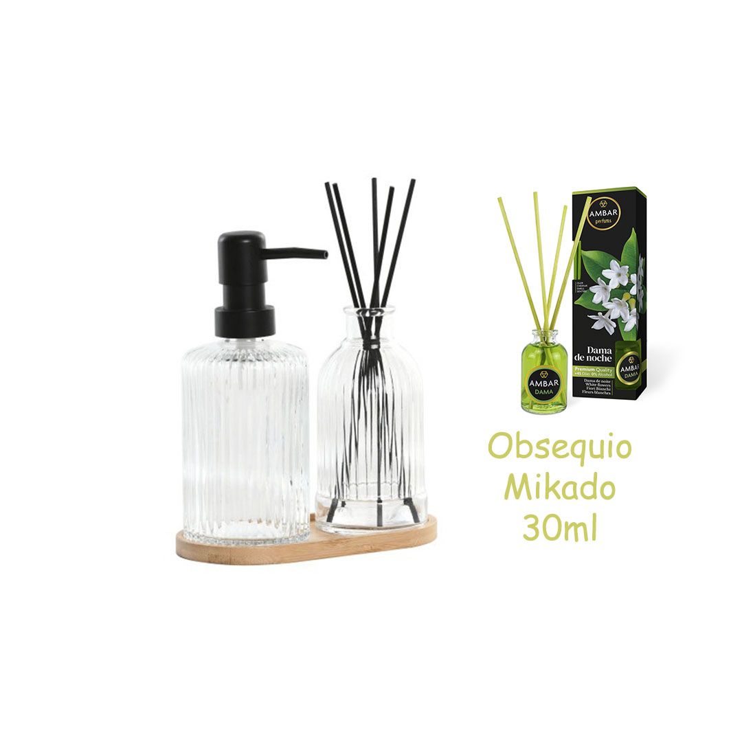 Lote Dosificador + Mikado + bandeja bamboo como soporte