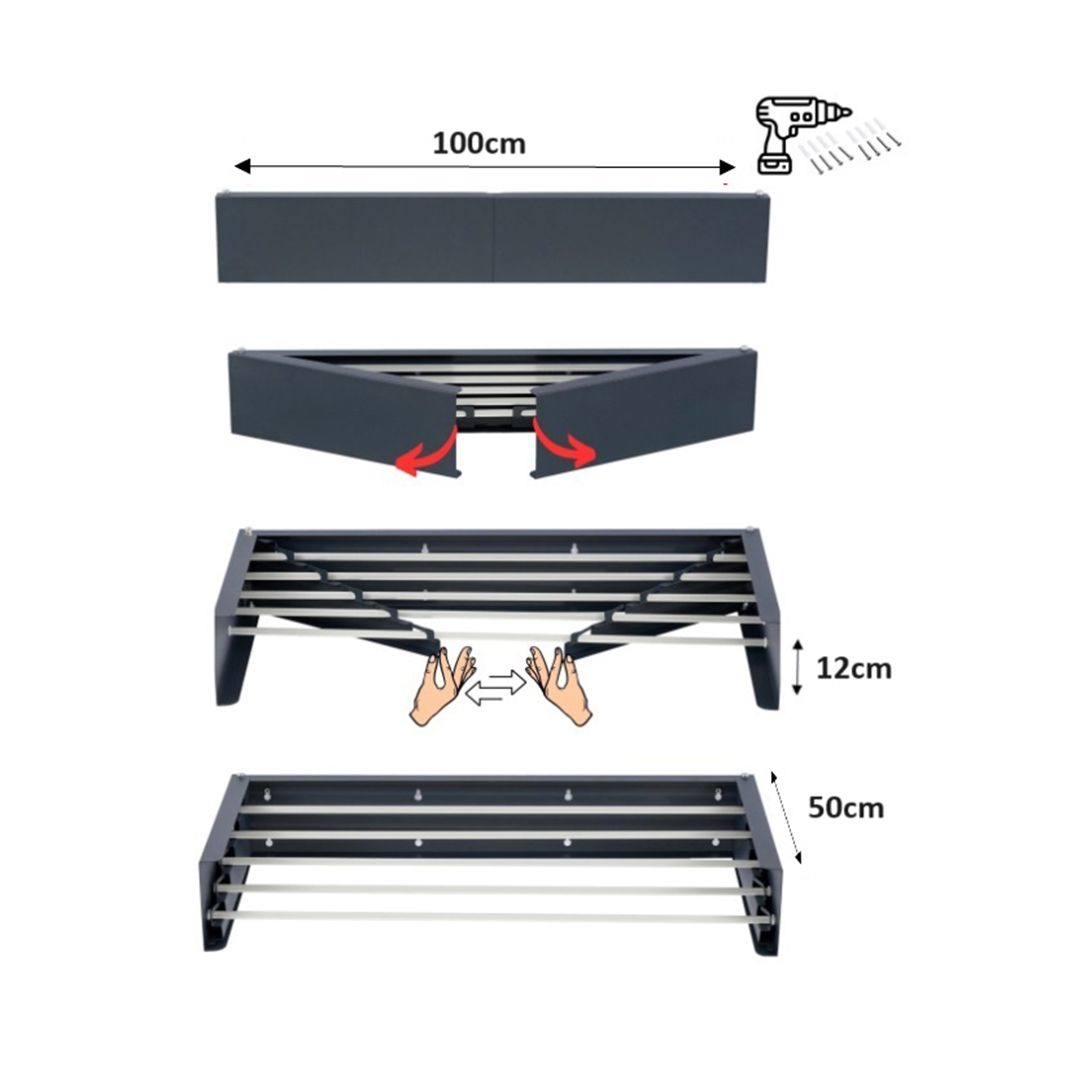 TENDEDERO DE PARED PLEGABLE NEGRO 100CM