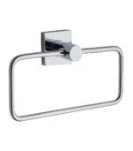 Toallero de anilla fabricado en acero inoxidable. Instalación con tornillos. Embellecedor con diseño cuadrado. Se suministra en caja expositora.