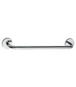 Toallero de barra fabricado en acero inoxidable. La instalación puede ser con tornillos o con adhesivo. Embellecedor con diseño circular. Se suministra en caja expositora.